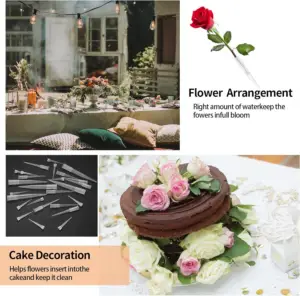 - Blumenröhren zum Dekorieren von Kuchen: Sie können Blumen in die Blumenröhren stecken, dann die Spitze in den Kuchen drücken und Blumen hinzufügen, um die Dekoration perfekt zu platzieren, sodass Ihr Kuchen anders und zarter und schöner aussieht.